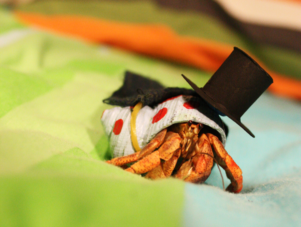 hahaha i've never seen anyone dress up their hermit crabs! too funny! also, love the giraffe you discovered in the previous post! what a fun blog you have!