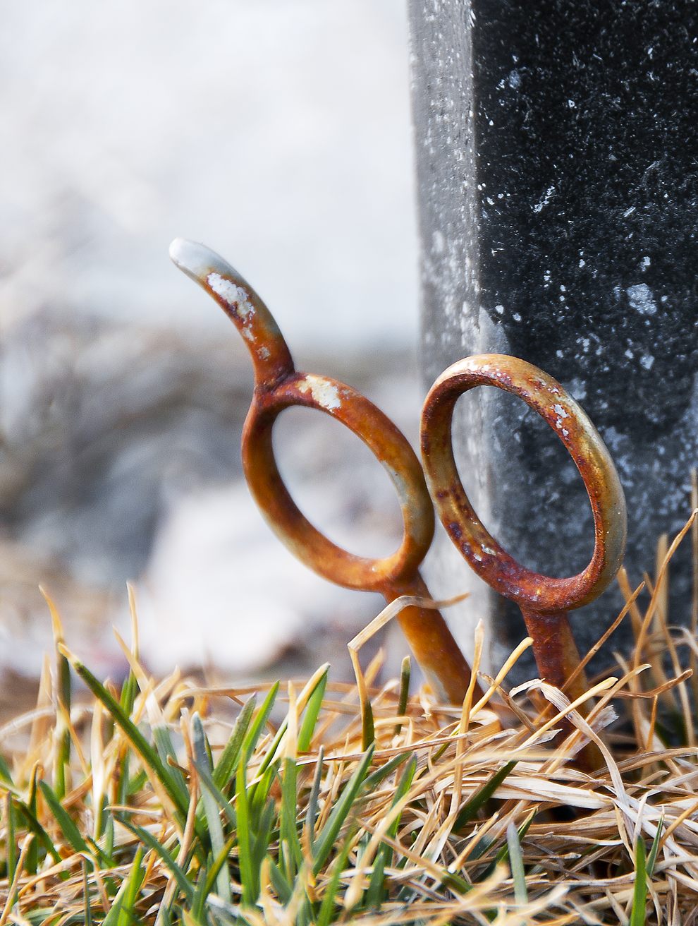 Anywho, the compositional properties are wonderfully framed, with the chipped block, rusting scissor and browning grass interacting in this collective "fraying" process. It is a beautiful degradation (like Frou Frou's song "beauty in the breakdown"). Good stuff ;)