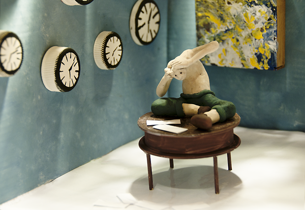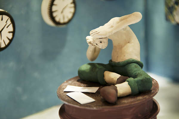 | Yesterday I had another opportunity to make a sculpture out of Sculpey clay. I made a frustrated creature. It originally represented me and certain things that have been bothering me lately. The setting I created for it doesn't really match my intentions. Does it make you think of anything other than paying bills? |