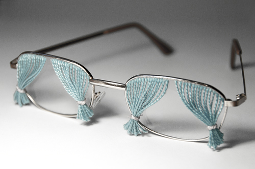 Glasses are like little miniature windows that people wear over their eyes to see the outside world. So I added curtains.
