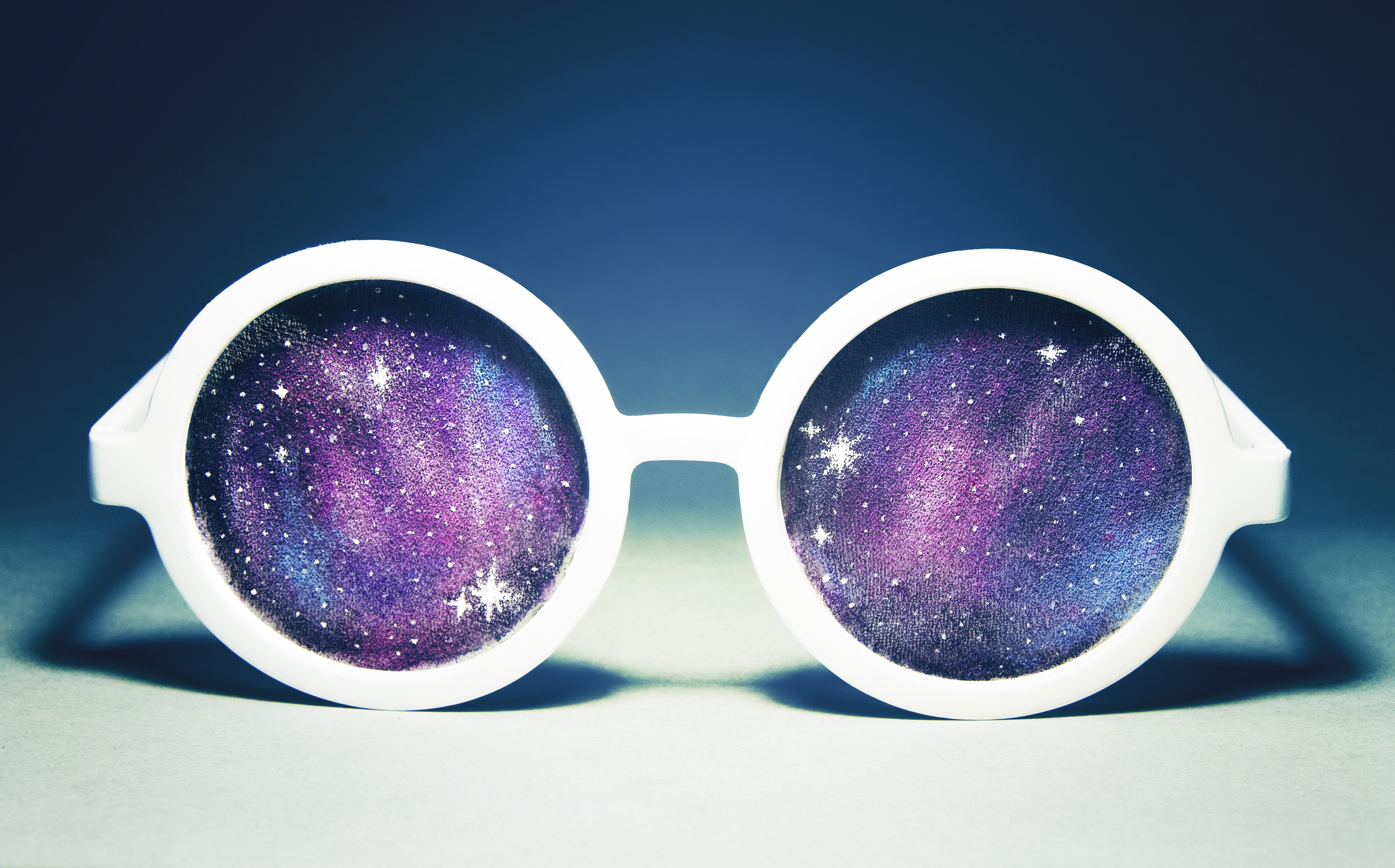 ![]() ![]() ![]() As for the glasses... I made them! They're an easy Do-It-Yourself. I bought white nylons and cut them out to replace the lenses, and then I painted them space themed. Depending on the nylons, you'll have to stretch them out over the frame based on your preferences: the more stretched they are, the more clear you can see through them, but the less clear your painting will look! It's all about balance. I think they're rad. |